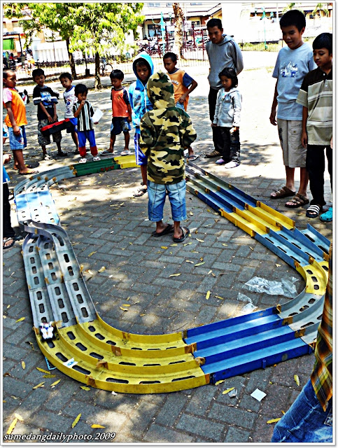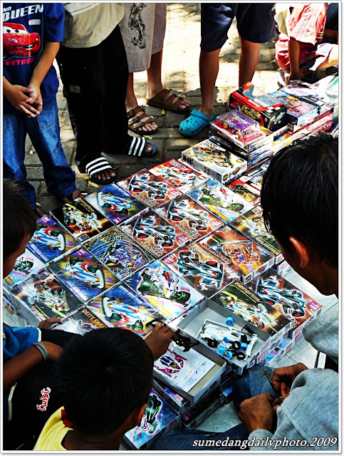 Actually, the most famous brand of Mini 4WD is named Tamiya. This street vendor usually sell his stuffs (actually, itsn't Tamiya) in the town square. He offers various types and, of course, with different prices. The cheapest one priced $1.5 and the most expensive ones was $5 (recent exchange rates; USD 1 = IDR 9.750).
